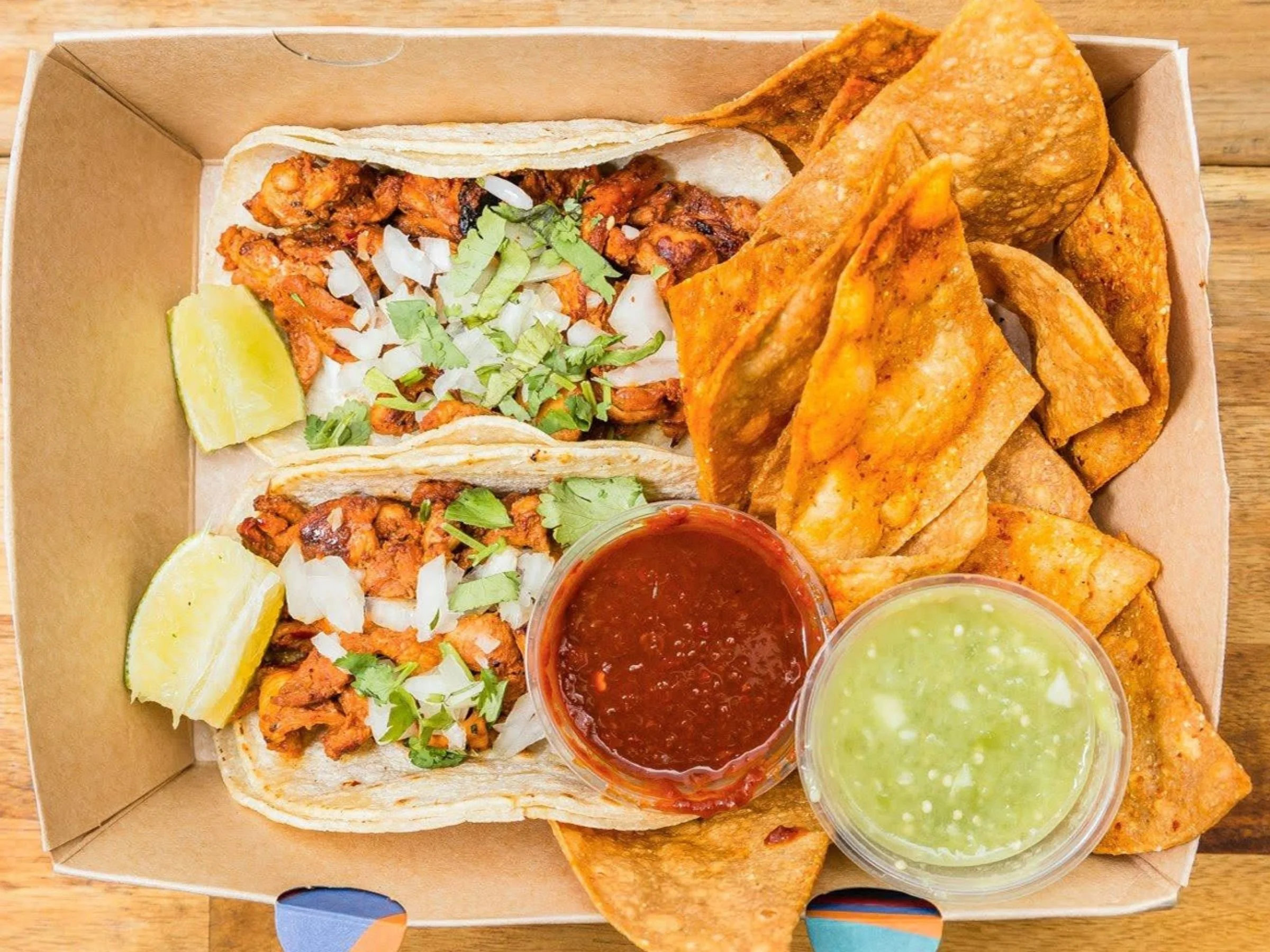Korea Taqueria’s 2 Taco Meal Box is the perfect quick meal featuring two of our Korean-Mexican fusion tacos served with tortilla chips and salsa. Choose your favorite taco style and protein for a satisfying combo.